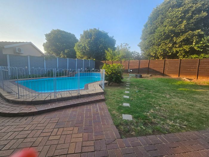 Entertainer's family retreat in a quiet boomed enclave beside a park, with covered patio, pool and built-in braai, modern kitchen and six bedrooms, double garage.