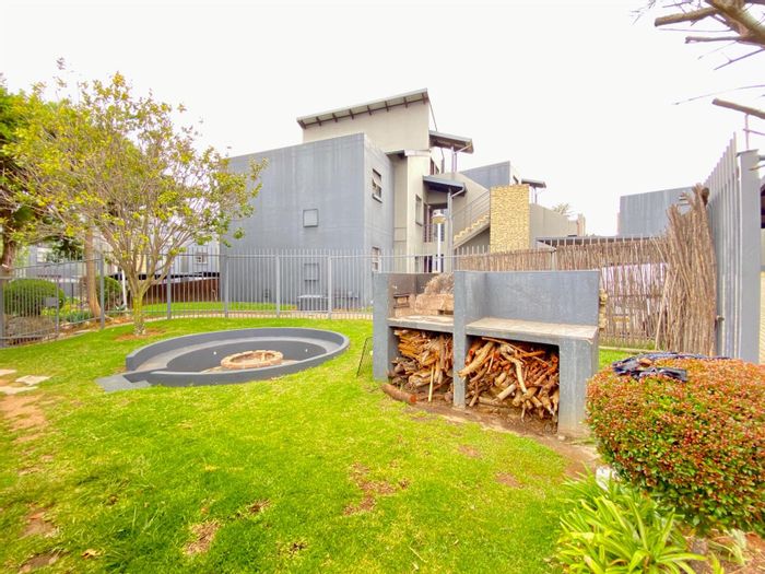Entertainer's third-floor unit in Acacia, Greenstone Hill — covered balcony with built-in braai, 24/7 security and pool, walking distance to Stoneridge Mall; two beds, one bath, two covered bays.