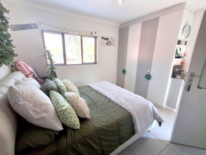 Secure boomed-off enclave in Buurendal, Edenvale — leafy communal gardens, modern open-plan living with built-in appliances and double covered parking. Two bedrooms, 1.5 baths.