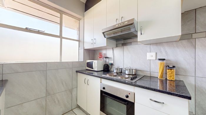 Enjoy active, convenient living near Germiston Lake and Virgin Active, with a new open-plan kitchen, veranda and backup generator for load-shedding reassurance — two bedrooms, one bath, two covered parking bays.