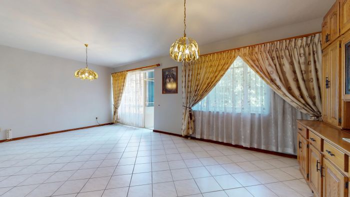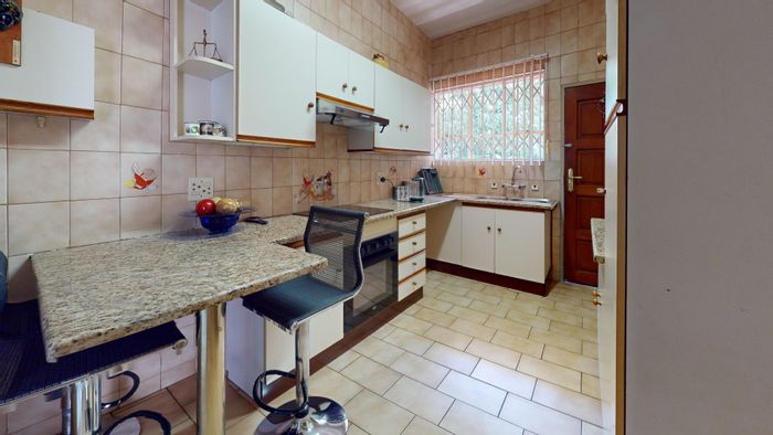 Relaxed family living in quiet Denlee, Germiston — stroll to Victoria Lake and shops. Sunroom, modern kitchen with new Defy stove, full solar and double-size garage.