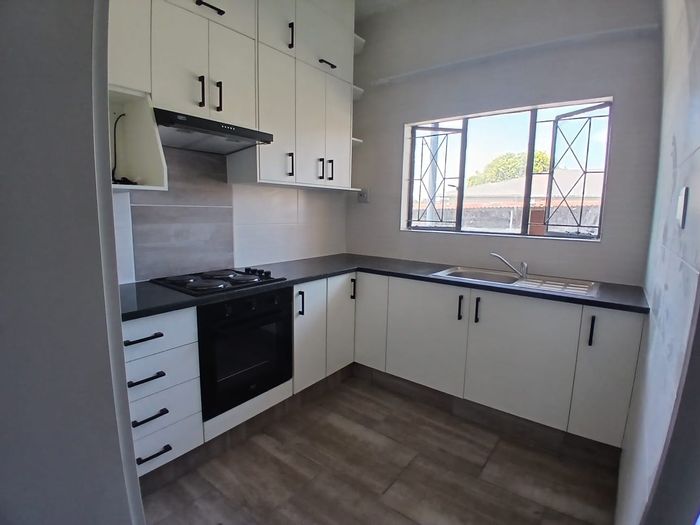 Effortless ground-floor living in Elsburg, Germiston — walk to shops and schools; stylish modern kitchen with new oven, two bedrooms, one bathroom and covered parking.