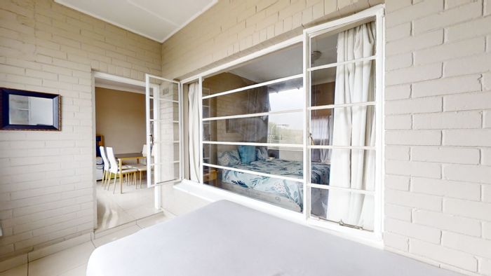 Top-floor corner flat in Lambton, steps from Rand Airport business park and shopping; enclosed balcony doubles as bedroom/office, large built-ins, modern bathroom, secure complex.