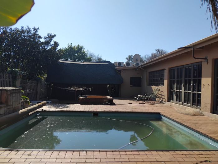 Sun-drenched family living in Solheim, bordering Bedfordview, with income-generating cottages, sparkling pool and large workshop — three bedrooms, two bathrooms and double garage.