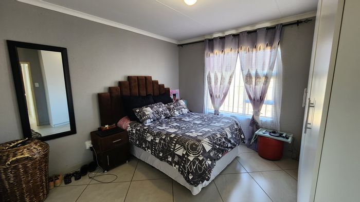 Convenient Bergsig townhouse near schools and shopping, featuring open-plan living, tiled porch, private low-maintenance garden and main-bedroom patio — three bedrooms, three bathrooms and single garage.