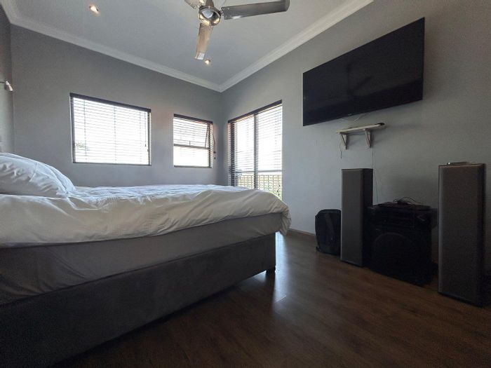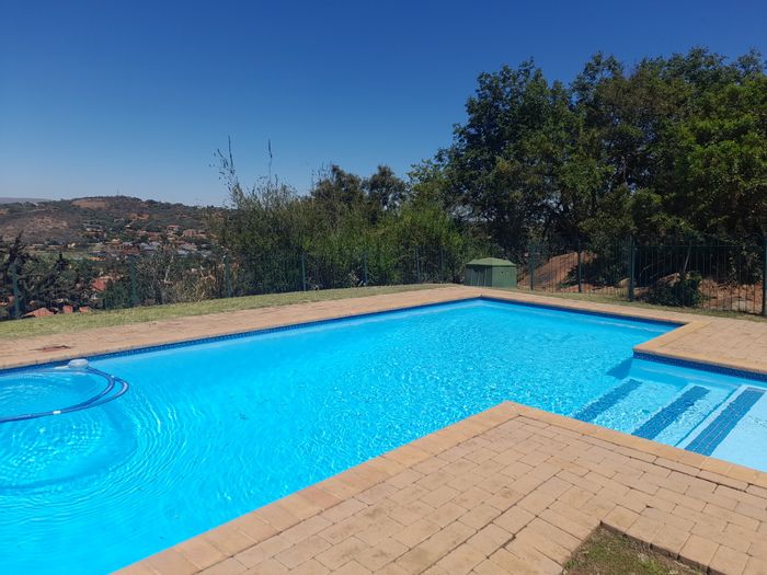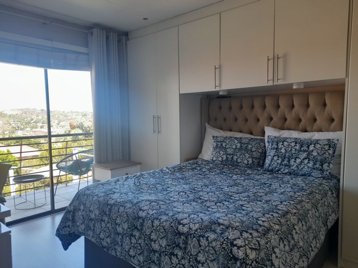 Entertainer's retreat with sundowners on dual balconies and wide views in Tiffani Gardens near Trinity School, featuring two pools with lapa, three bedrooms, two baths and four covered parking.