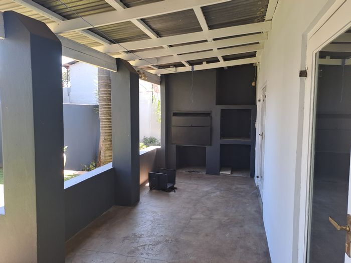Entertainer’s dream in a quiet neighbourhood on a 990 m² stand, with pool, built-in braai and versatile cottage ideal as home office or flatlet. Three bedrooms, two bathrooms, double garage.
