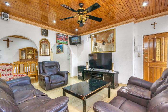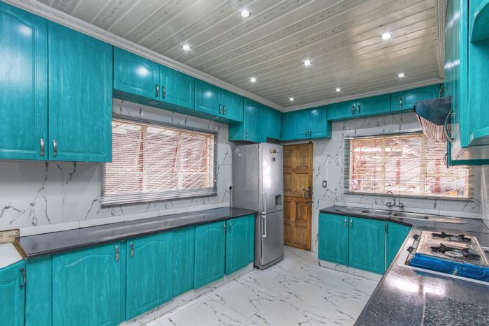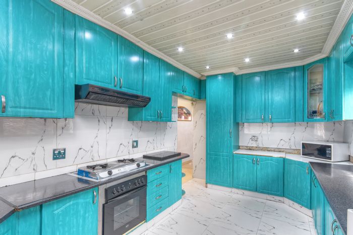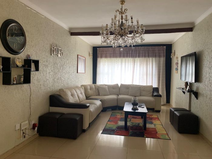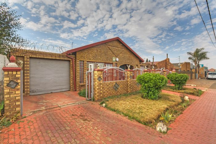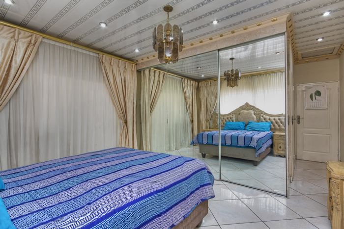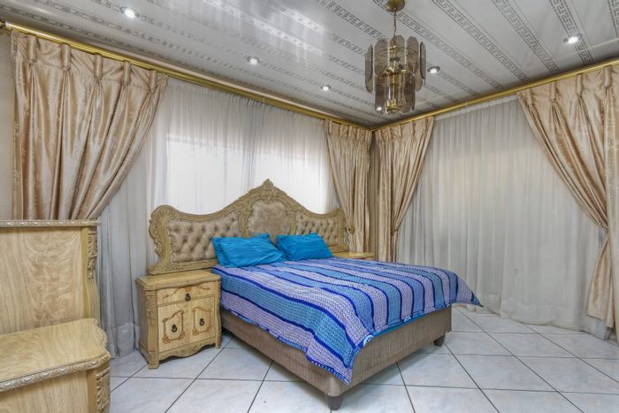 Entertainer’s family home in central Lenasia, steps from schools, hospitals and malls — colorful designer kitchen, double automated gates with CCTV, huge tandem garages; 3 beds, 2 baths.
