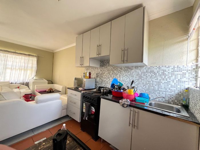 Relax in modern Rembrandt Park living with sunny balcony and open-plan living, moments from shops, schools and Sandton — two bedrooms, one bathroom, secure complex.