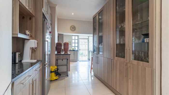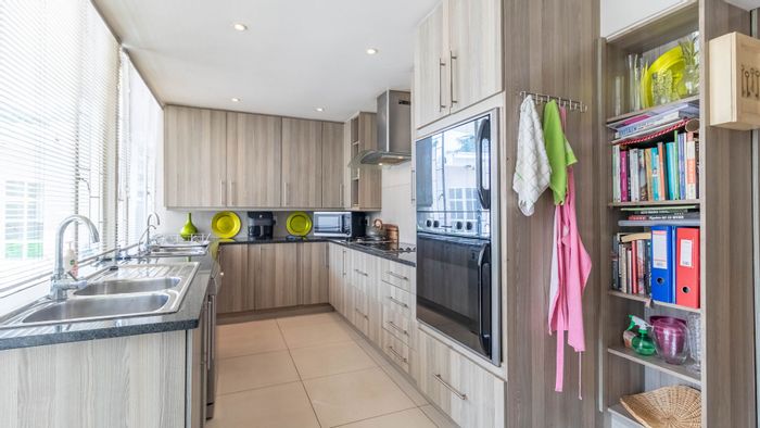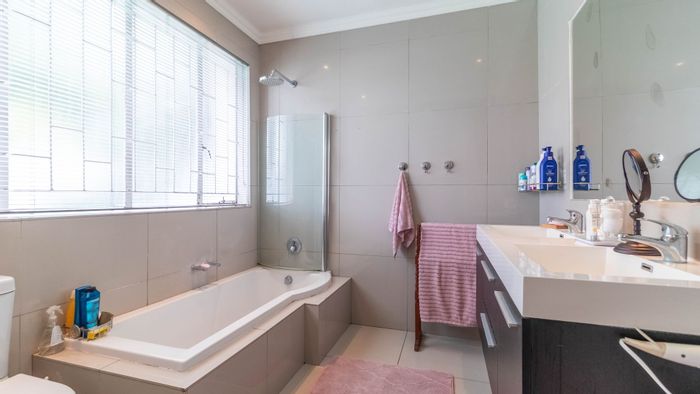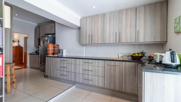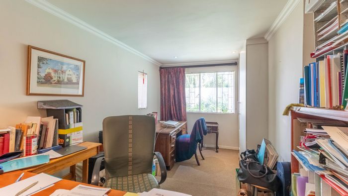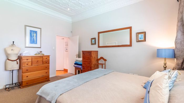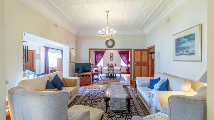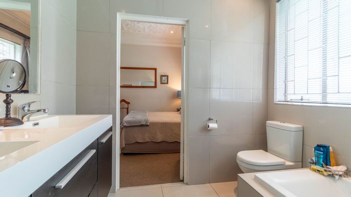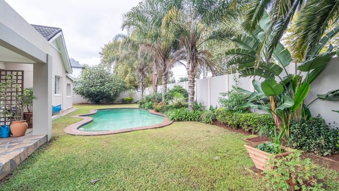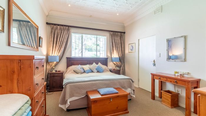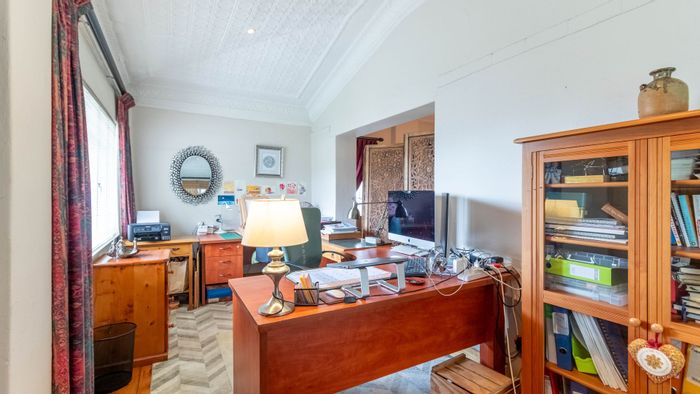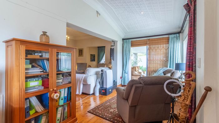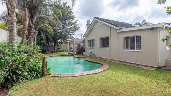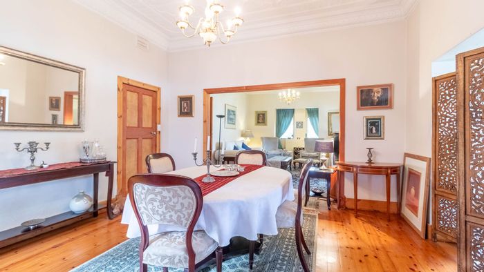 Relaxed family living in a quiet, established neighbourhood with a well-kept garden and private pool; character-filled interiors with pressed ceilings and original wooden floors. Four bedrooms, three bathrooms, single garage.