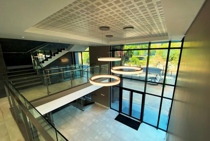 Elevate corporate image with executive entertaining on a penthouse balcony and grand triple-volume reception, in Melrose’s prestigious precinct with M1 visibility and swift access to Sandton.