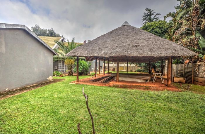 Entertainer's family haven in a peaceful secure enclave near local amenities, featuring an expansive entertainment area with built-in braai and jacuzzi; four bedrooms, four bathrooms, and four garages.