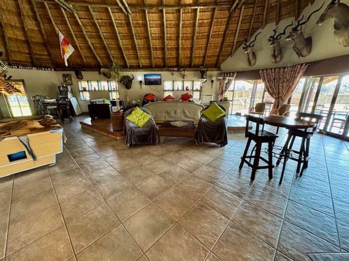 R50,000/month income-producing farm ideally located for logistics, featuring a 5‑bed main house, 8 flats, crane-hire business, warehouses, borehole and staff quarters — ready to expand.