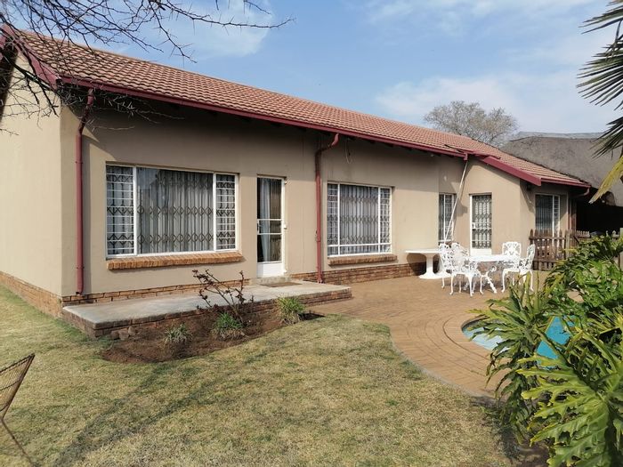 Peaceful family living near schools and shops, with a fully equipped kitchen flowing to lounge and separate dining room, main en-suite, three bedrooms with built-in cupboards on 1,085m².