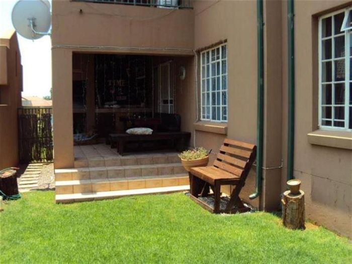 Secure family duplex in Villa Rus, Terenure — designer kitchen with island, patio with built-in braai and private garden; 24/7 guarded access. Three bedrooms, two baths.