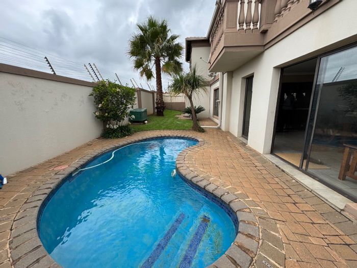 Entertainer's haven in Glen Erasmia Boulevard Estate, Kempton Park — open-plan living flowing to a covered patio with built-in braai, private pool and garden; four bedrooms, double garage.