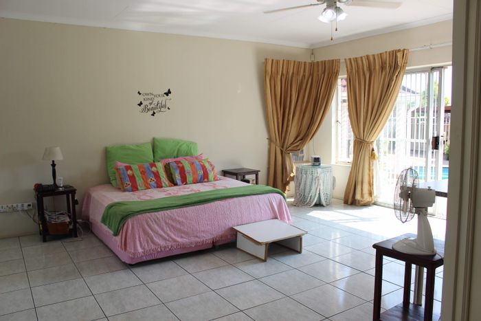 Relaxed family living in a well-established neighborhood with covered braai entertainment patio and pool, full-home solar power, flexible living areas — four bedrooms, two-and-a-half baths, four covered parking bays.