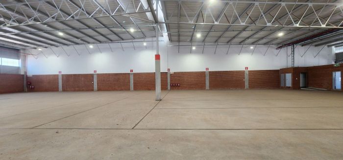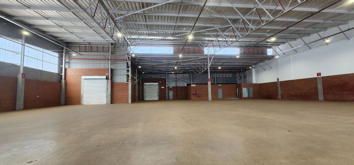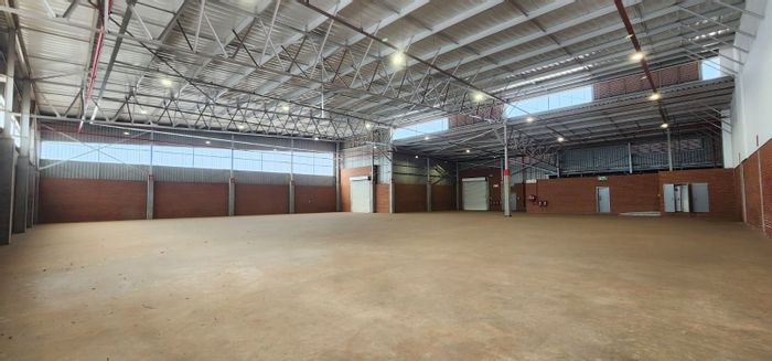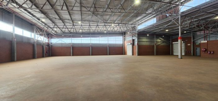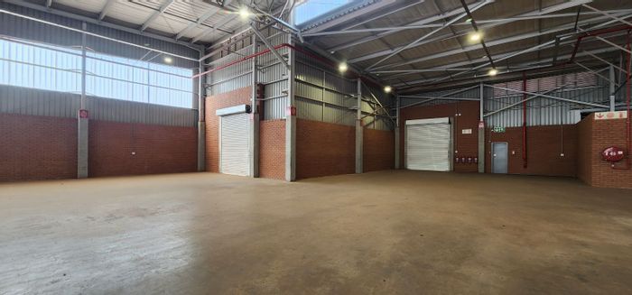 Position your operation in Kempton Park minutes from the R21 and airports, near Olive Wood Village and Curro — 2,682m² unit with high eaves and 24/7 CCTV.