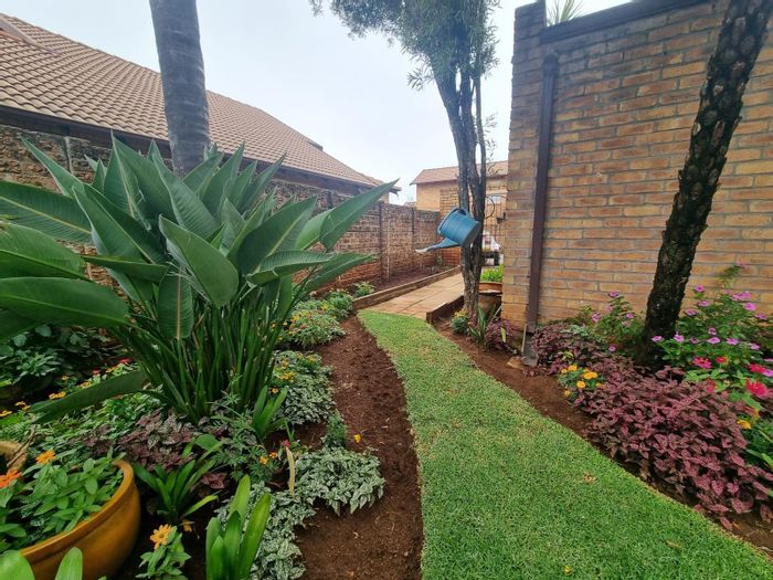 Relaxed suburban living in quiet, sought-after Bonaero Park — corner townhouse with expansive side-and-back garden and covered patio with built-in braai, plus three bedrooms and double carport