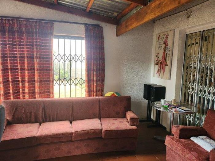 Versatile multi-dwelling retreat in a serene setting — includes a 4-bedroom main house, double-storey thatch with loft, and garden cottage; patios and strong rental potential.