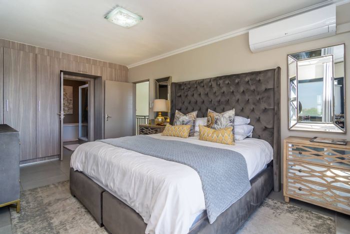 Entertainer's dream in a secure estate — seamless indoor-outdoor flow to a dedicated outside bar and built-in braai, private balconies with panoramic views. 3-bed, 3-bath, double garage.