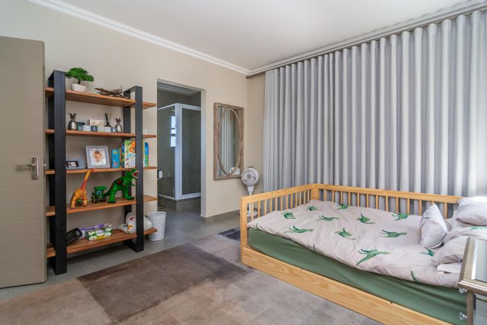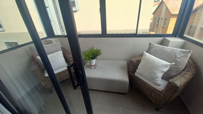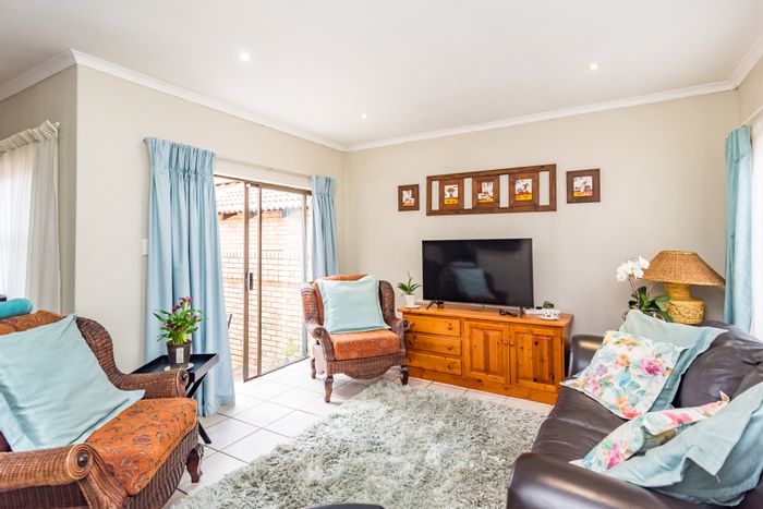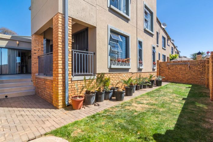 Enjoy relaxed indoor-outdoor living in a secure estate near Cradlestone Mall and the N14, featuring a private garden and upstairs balcony with estate and hill views, three bedrooms.