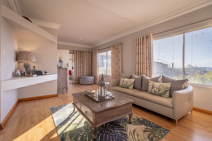 Relaxed lock-up-and-go living in a secure, well-maintained complex, open-plan lounge and skylit scullery, covered patio with built-in braai and elevated views — three bedrooms, two bathrooms, three covered parking.