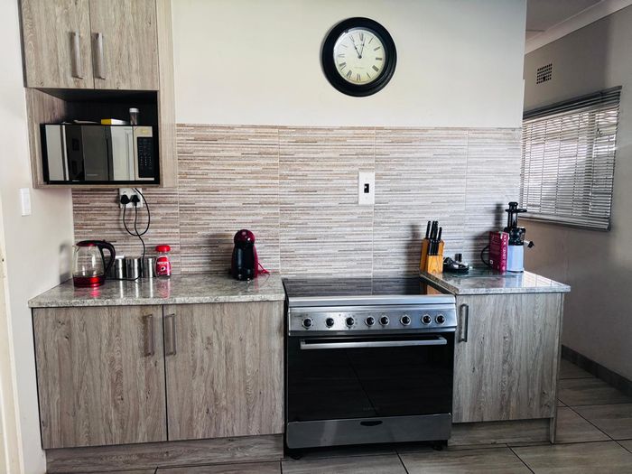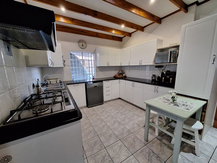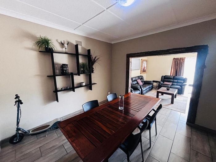 Entertainer's retreat in leafy Noordkruin, perfect for relaxed family living — thatched lapa with built-in braai and pool. Comes with three bedrooms, two bathrooms and double garage.