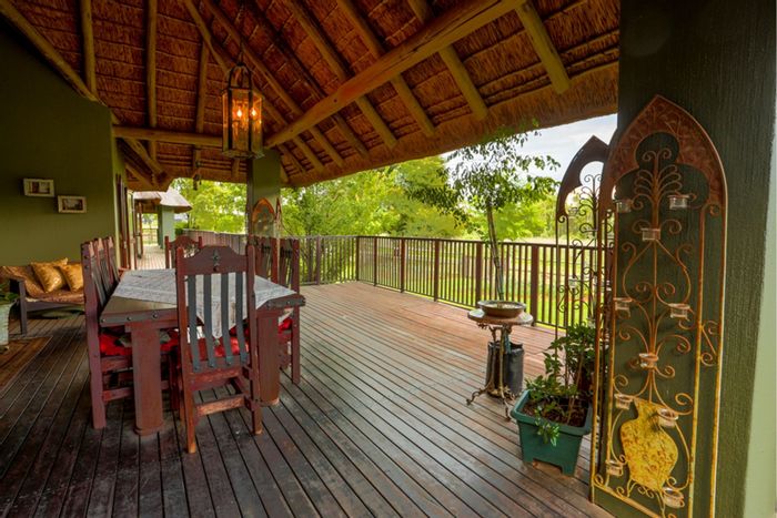 Enjoy private bushveld living on Letamo Game Farm with dual-living layout and wraparound deck overlooking open veld, ideal for families or guests; five bedrooms, five bathrooms.