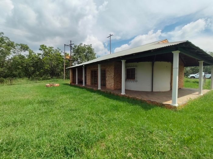 Create a self-sufficient rural lifestyle near Magaliesburg with river frontage and mature oak trees, vegetable tunnel frames, large dam for irrigation, plus a five-bed thatched main house.