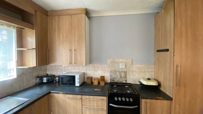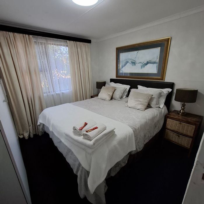 Relaxed suburban living near Meyerton amenities with an open-plan kitchen and lounge, private pet-friendly garden, two bedrooms, one bathroom and a double garage.