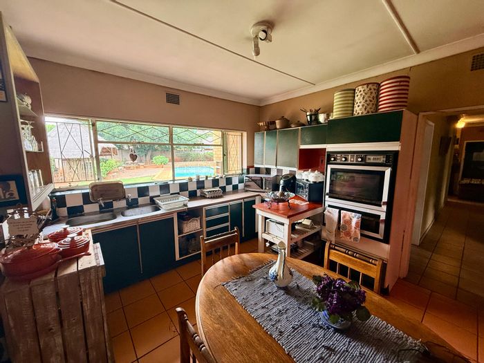 Versatile family living with rental income in sought-after Meyerton on a large corner stand, featuring a thatched lapa, sparkling pool and separate two-bedroom cottage; four bedrooms, multiple garages.