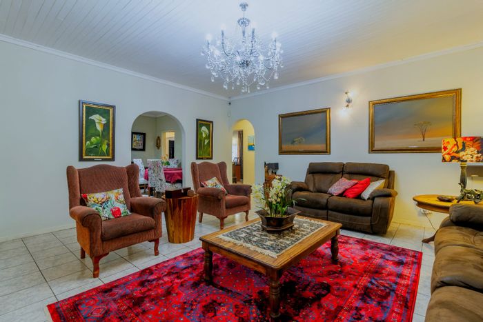 Entertain outdoors around a thatched lapa and pool on a generous 1,121 m² plot in a peaceful neighbourhood; open-plan living, spacious kitchen, four bedrooms, two bathrooms, double garage.
