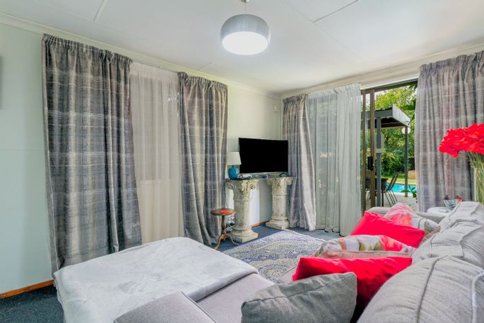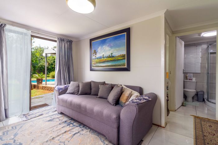 Effortless entertaining and relaxed family living on a private 2,181 m² estate, featuring indoor braai, sparkling pool, outdoor boma, private guest suite, 4 beds, 3 baths, parking for 3.