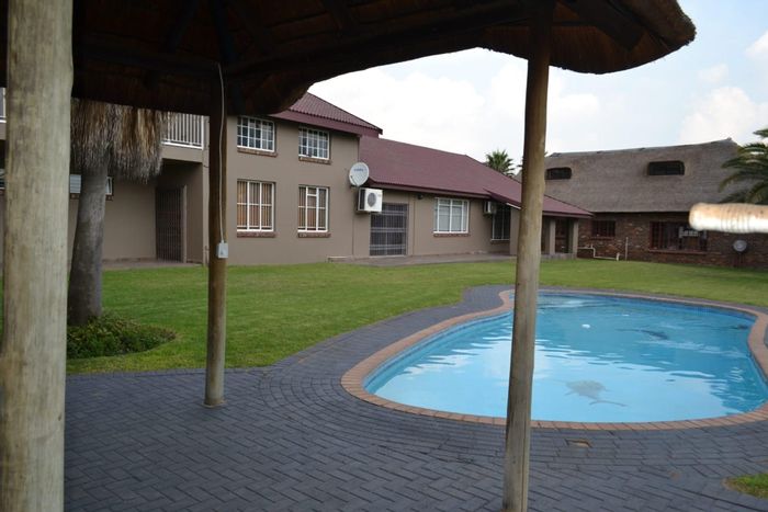 Entertainer's paradise boasting resort-style outdoor living in affluent Risiville, Midvaal — dining room with built-in bar, sparkling pool and lapa, three bedrooms, two bathrooms, double garage.