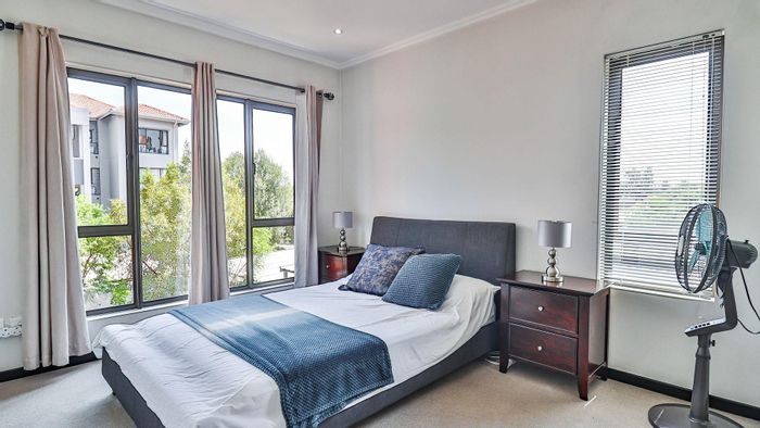 Relaxed suburban living with easy access to Midrand amenities in Barbeque Downs — loft-style second-floor apartment featuring a communal pool; three bedrooms, two baths, two covered parking.