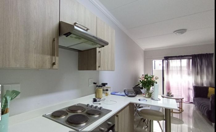 Live effortlessly near Mall of Africa and Midrand Gautrain in Halfway Gardens, with open-plan living flowing to a private patio, contemporary kitchen, and one bedroom, one bathroom.