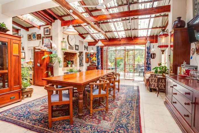 Country living in Beaulieu Country Estate with a massive garden, sparkling pool, skyline-glass lounge and man‑cave/home office; borehole, generator and veggie patch. Five bedrooms, three bathrooms, triple garage.