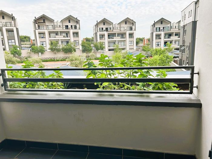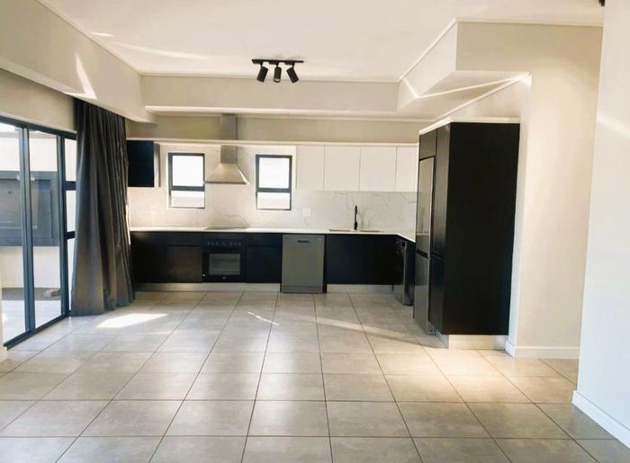 Convenient Midrand living near Sandridge Shopping Center and schools, with a modern kitchen and open-plan sitting room in a secure complex with 24/7 surveillance — two bedrooms, one bath, single garage.