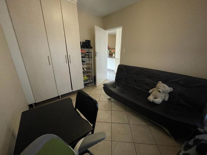 2 bedroom property in Riverside View with modern kitchen, tiled living area, neat exterior, and built-in cupboards.