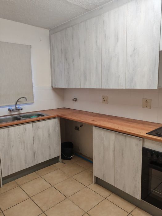 Easy-care cottage in Noordwyk Midrand, steps from local Spar and quick N1 access—open-plan kitchen/living, spacious bedroom, covered parking; one-bedroom, one-bathroom lease takeover through June.
