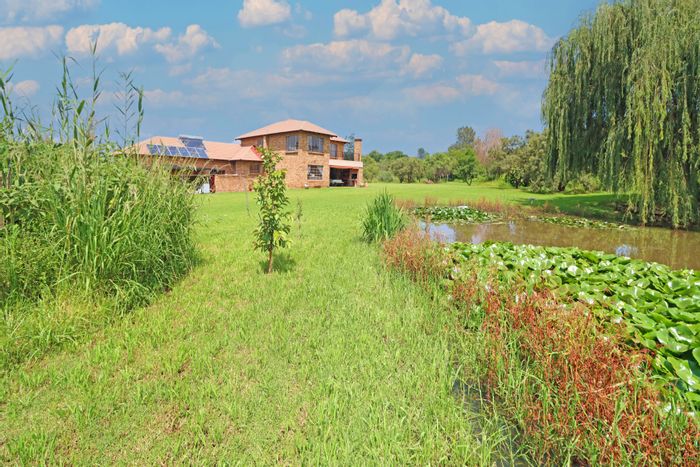 Hilltop country home in Randjesfontein Country Estate, set on 2.8ha with dams, 27 km bridle trails, income cottage and entertainer’s patio with braai — four bedrooms, two bathrooms.