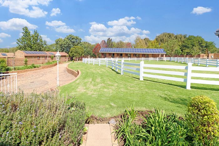 Country-living retreat in Randjesfontein Country Estate with 27 km bridle trails and tranquil open spaces; move-in ready on 1.4 ha with landscaped gardens, pool and income-producing cottage.