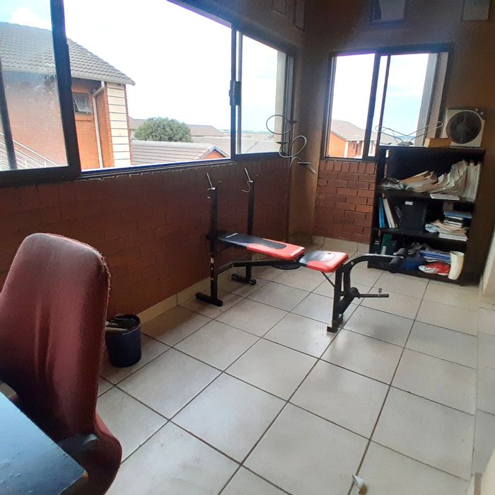 Enjoy secure, convenient estate living in Sagewood, Midrand — close to Mall of Africa and Gautrain. Enclosed glass balcony perfect as sunroom; three bedrooms, two bathrooms.