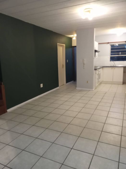 Enjoy vibrant suburban living in Vorna Valley, steps from Mall of Africa; upstairs open-plan unit with modern kitchen, large balcony and complex pool. Two beds, one bath, garage.