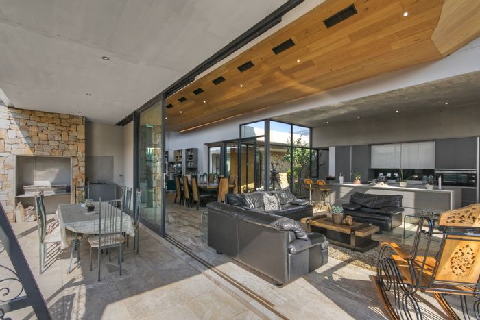 Enter refined Waterfall Country Estate Gate 2 living with a grand entrance, designer Siemens kitchen, private cinema and seamless indoor-outdoor flow to landscaped garden and sparkling pool; five bedrooms, staff quarters.