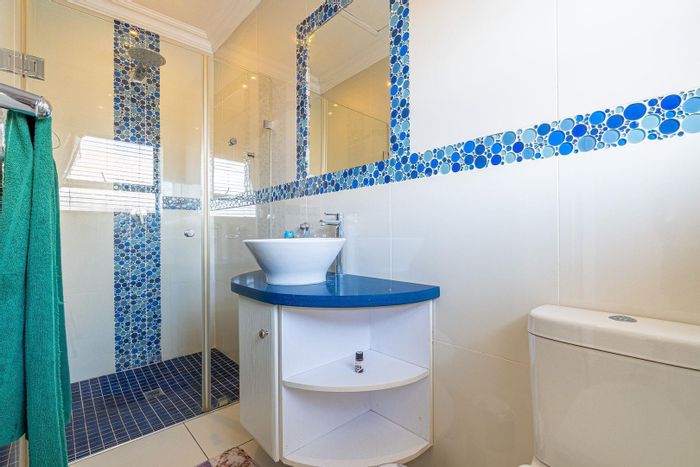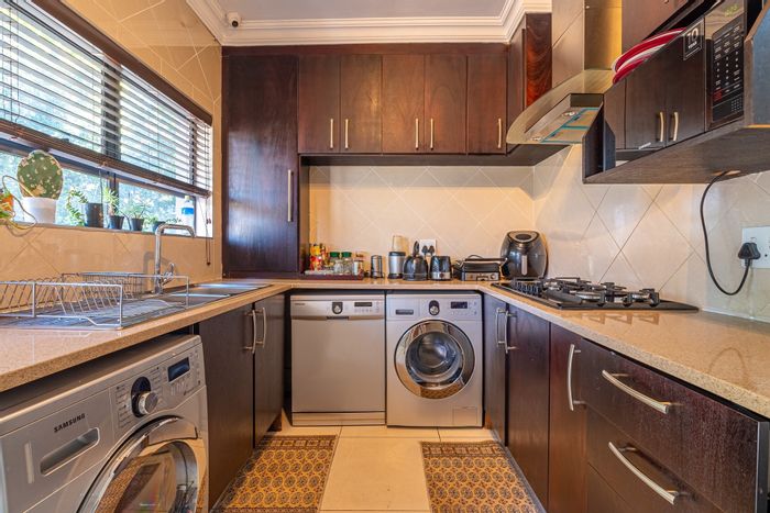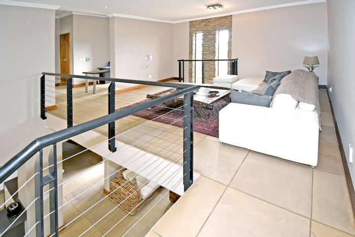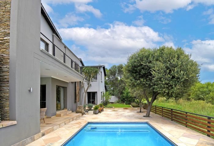 Serene Greenbelt living in Waterfall Village with pool, covered patio and built-in braai — modern kitchen, guest suite, balcony views, double garage and pet-friendly.