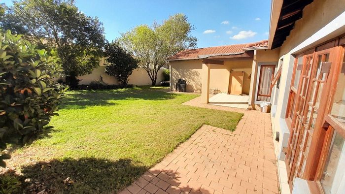 Three-bedroom, two-bathroom property on 553 m² land with garden, double garage, and parking for two vehicles.
