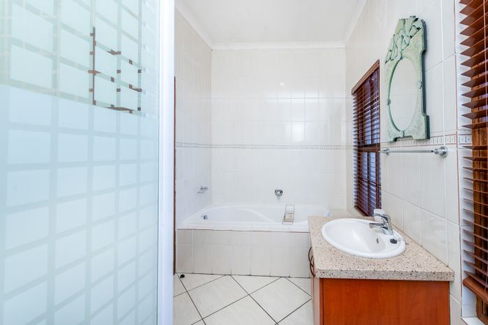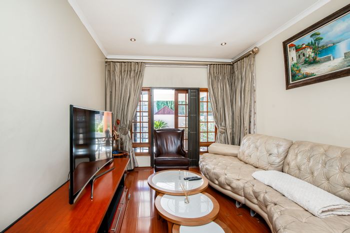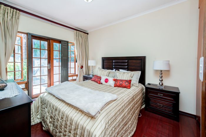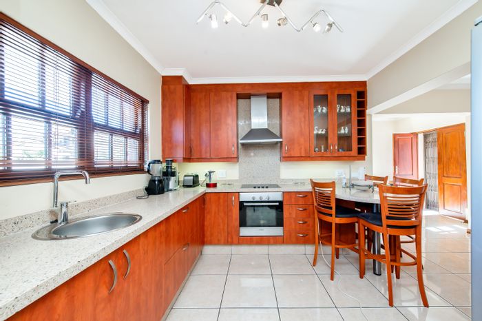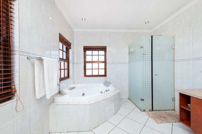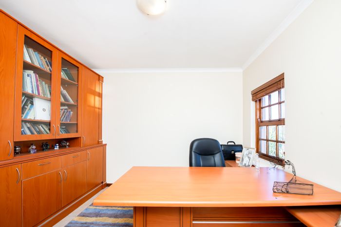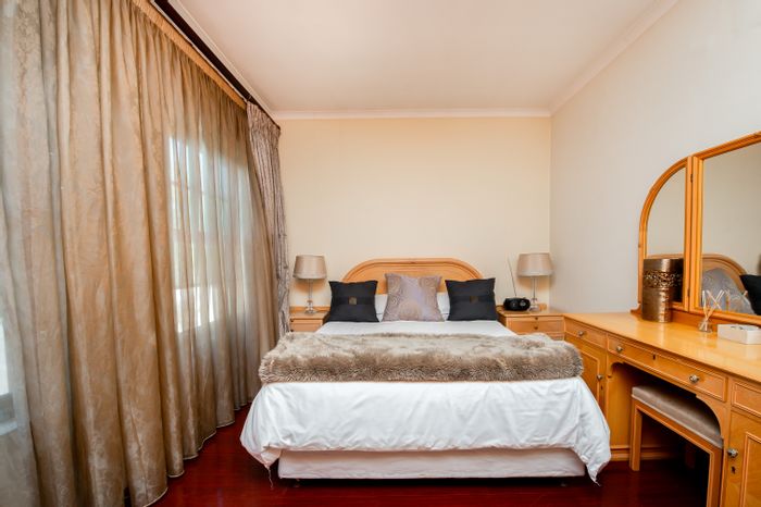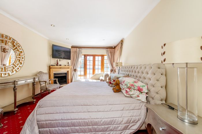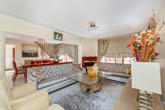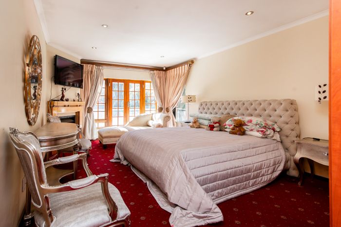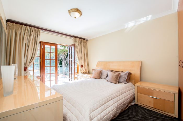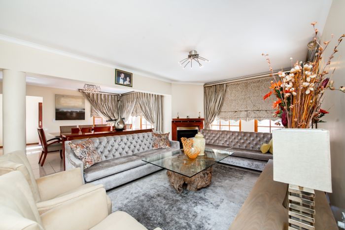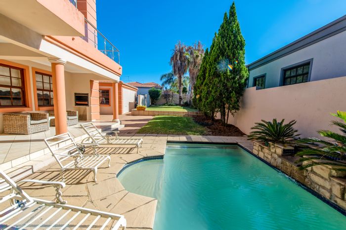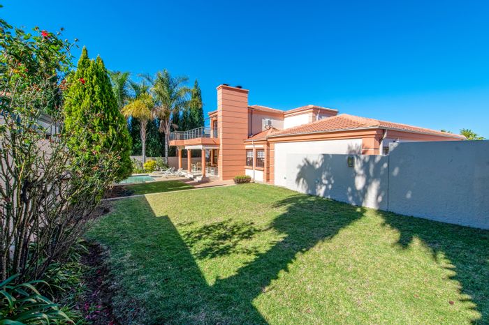 Resort-style entertaining with manicured garden and pool, open-plan living flowing to a patio — sunny balcony main suite, study, triple garage and staff accommodation. Four beds, 2.5 baths.