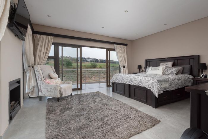 Entertain effortlessly at Eye of Africa, enjoying panoramic golf-course views from a covered patio with built-in braai and heated pool—four en-suite bedrooms plus staff quarters and solar backup.